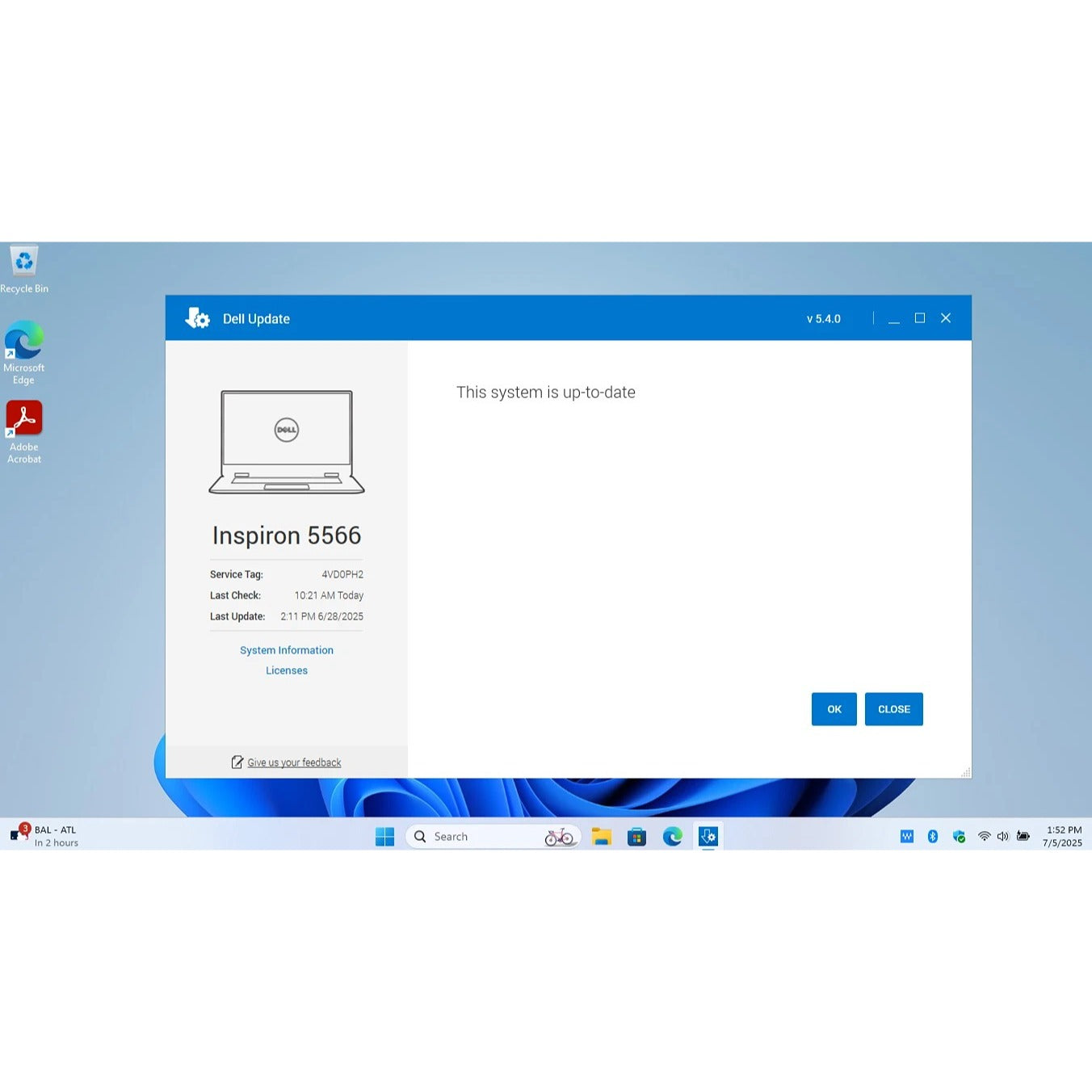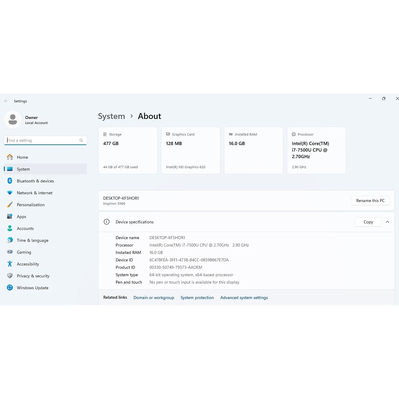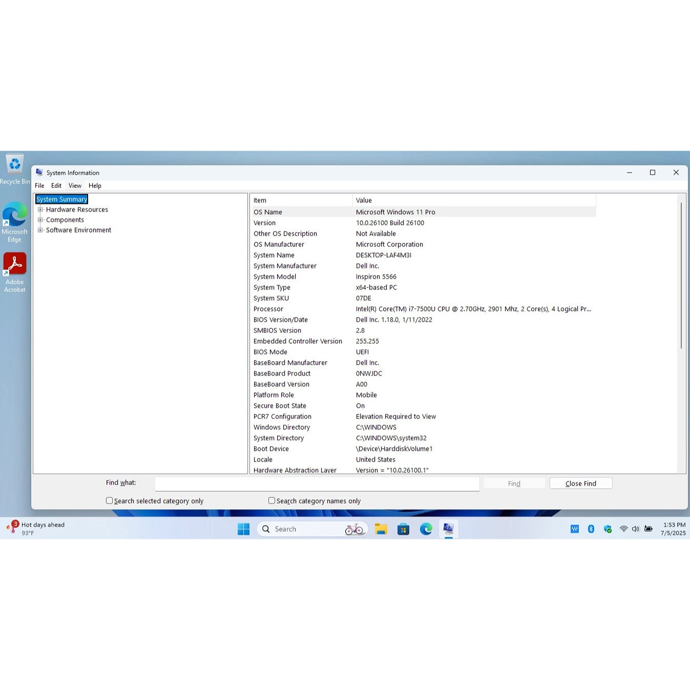 Product: DELL INSPIRON 15 5566 15.6" LAPTOP Intel Core i7-7500U (16GB MEM, 512GB SSD) 15.6'' DVDRW Windows 11