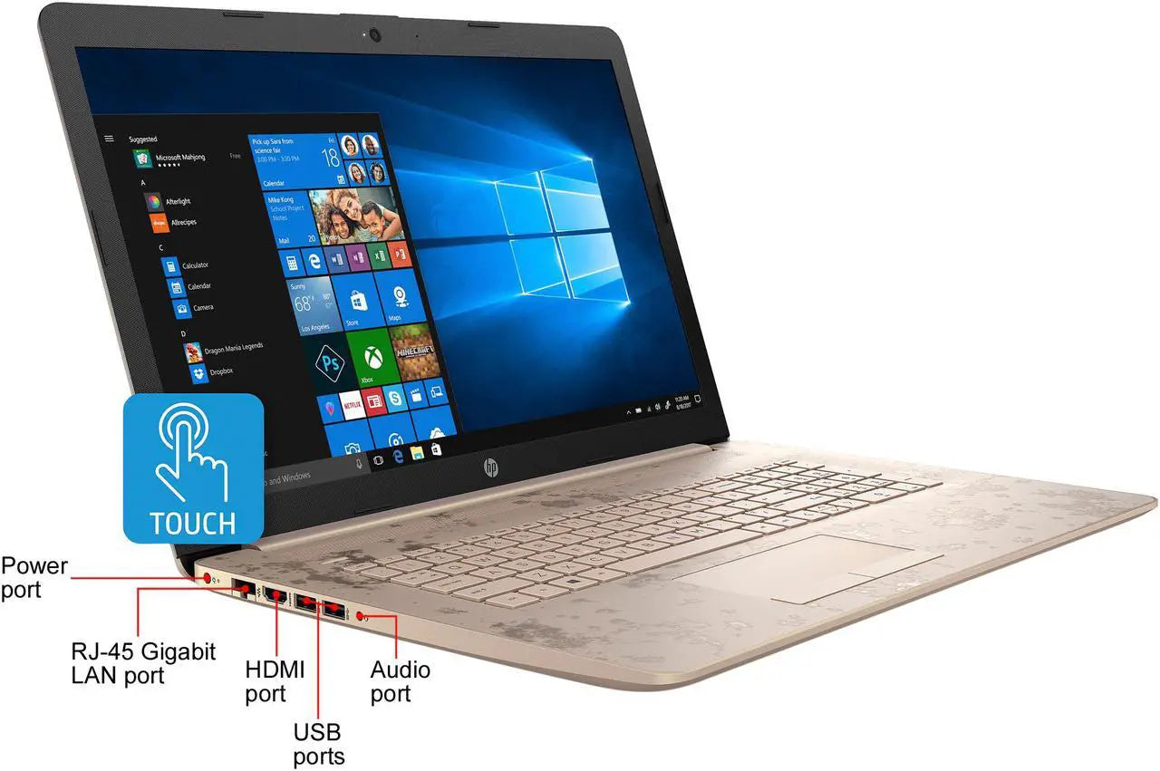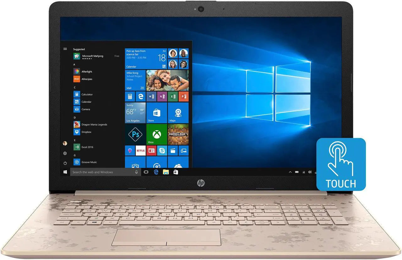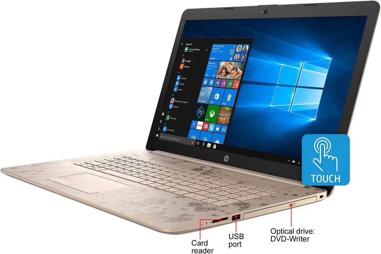 Product: HP 17-by0015cy 17.3" TOUCHSCREEN LAPTOP INTEL CORE I3-7100U @ 2.40GHZ (16GB RAM, 256GB SSD + 1TB HDD) WINDOWS 10 - BEIGE/GOLD/BLACK COLOR