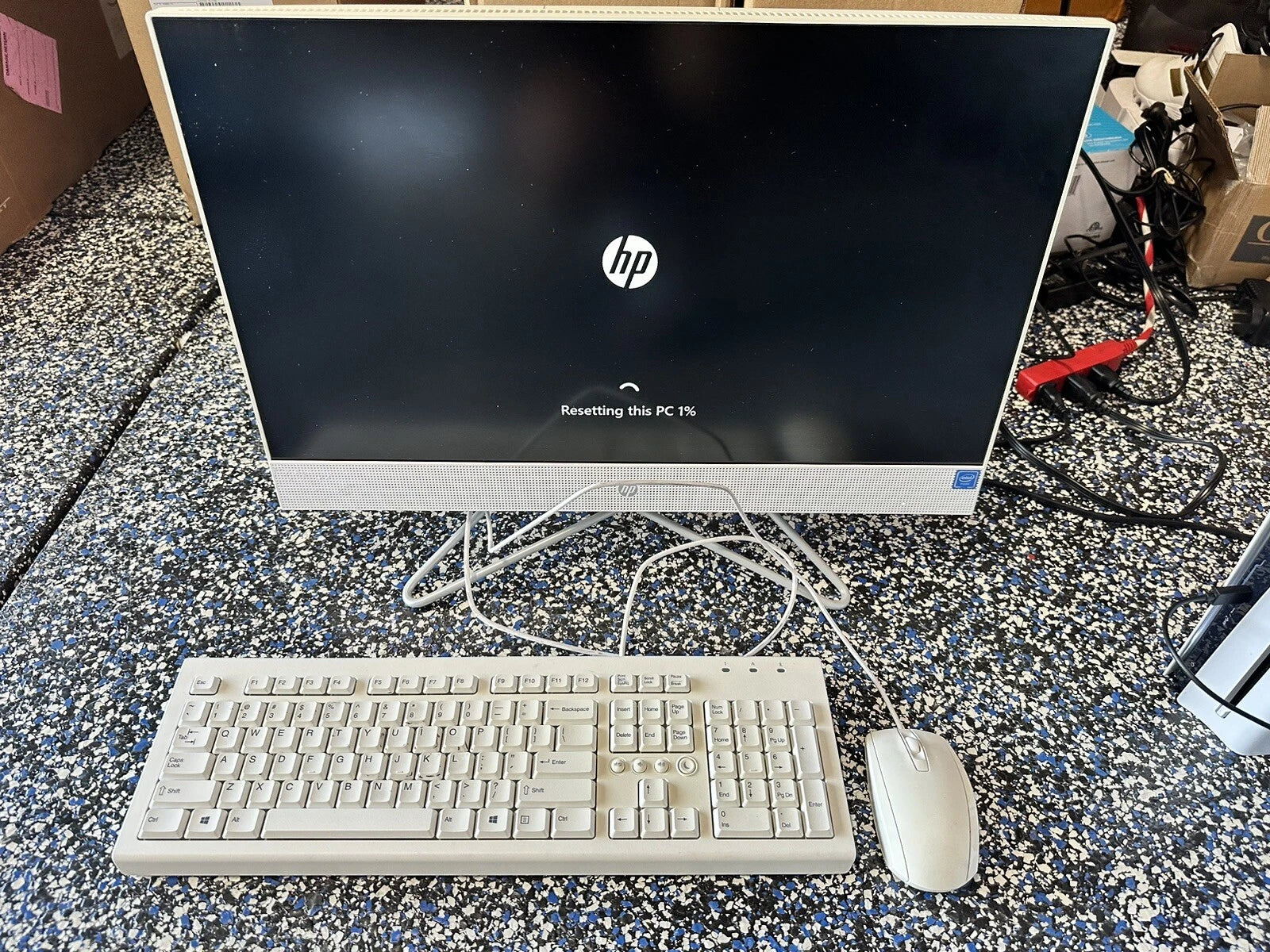 HP 24-dd0056 FHD 23.8" All-in-One Desktop PC, Intel Celeron J4005 2.0 GHz (4GB DDR4 1TB HDD) CD DVD, Keyboard, Mouse, Charger