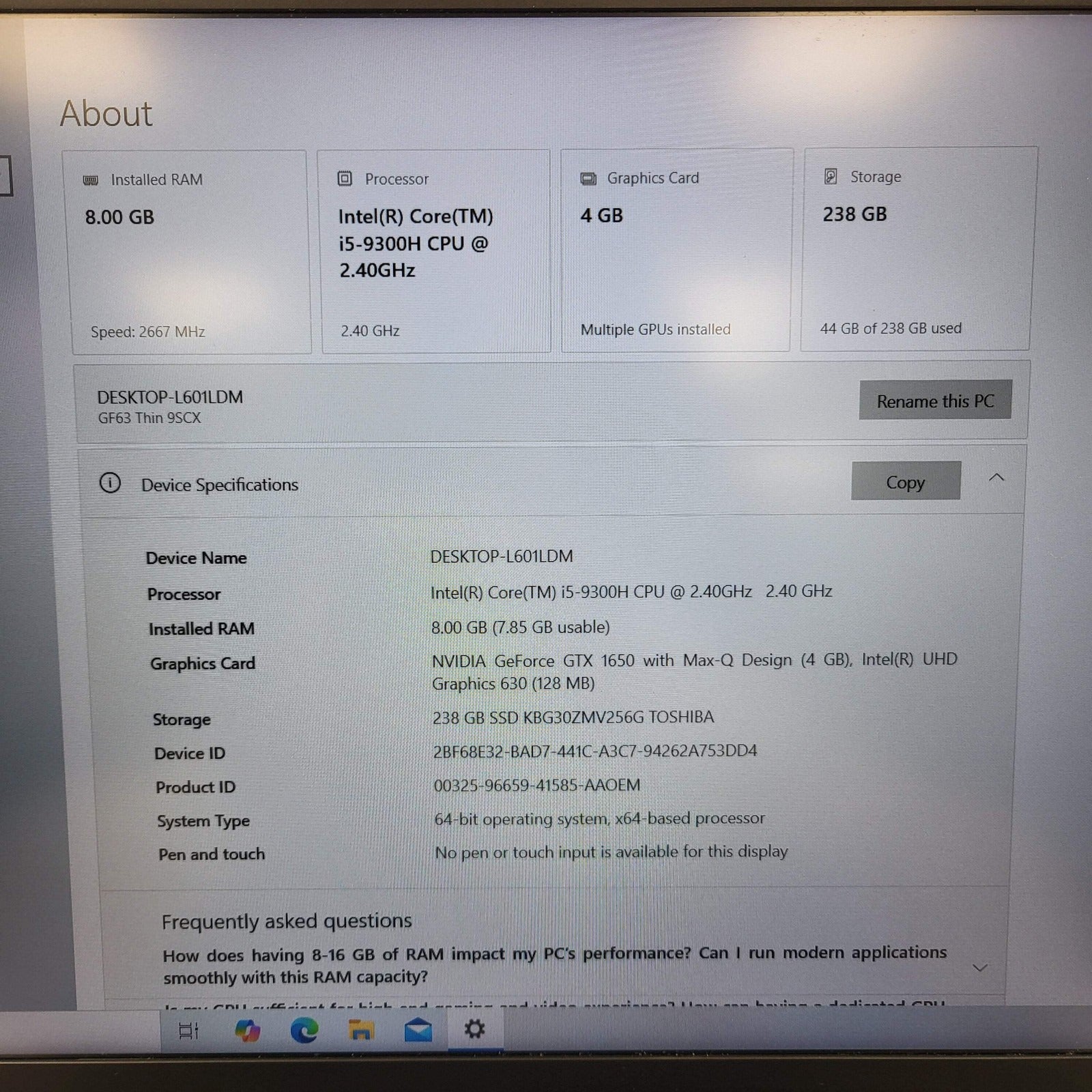 Product: MSI Thin GF63 9SCX 15.6" Gaming Laptop, Intel Core i5-9300H (16GB RAM, 256GB SSD + 500GB HDD) NVIDIA GeForce GTX 1650 Max Q, Windows 11